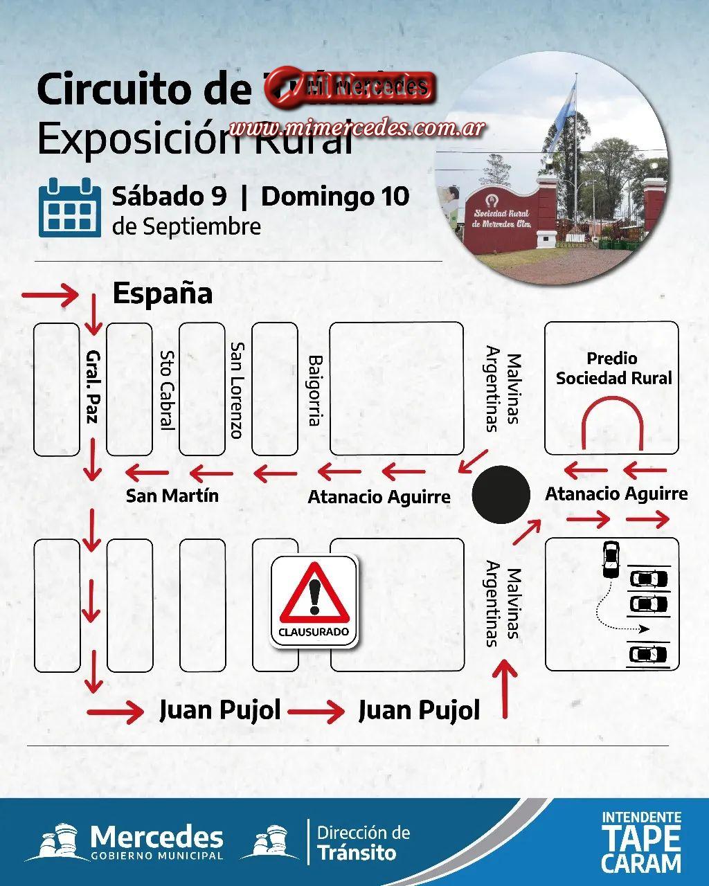 La Subsecretaría de Seguridad, a través de la Dirección de Tránsito Municipal, informa sobre el circuito a implementarse con motivo de la exposición de la Sociedad Rural de Mercedes, los días sábado 9 y domingo 10 de septiembre.