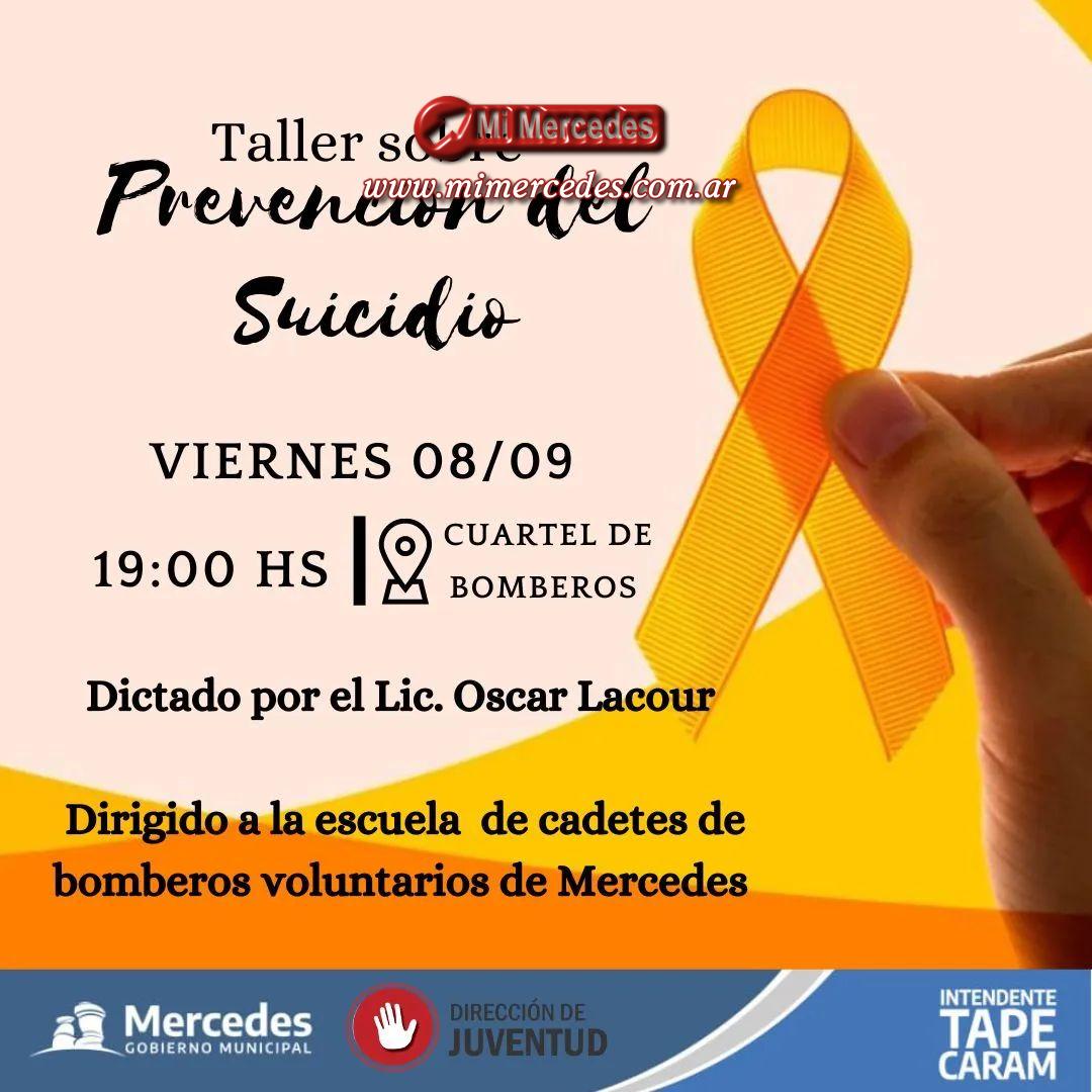 En el marco del Día Internacional sobre la Prevención del Suicidio que se conmemora el 10 de septiembre, este viernes 8, se brindará un Taller sobre Prevención del Suicidio dirigido a la Escuela de Cadetes de Bomberos Voluntarios, en el Cuartel de esa institución, a las 19:00hs.