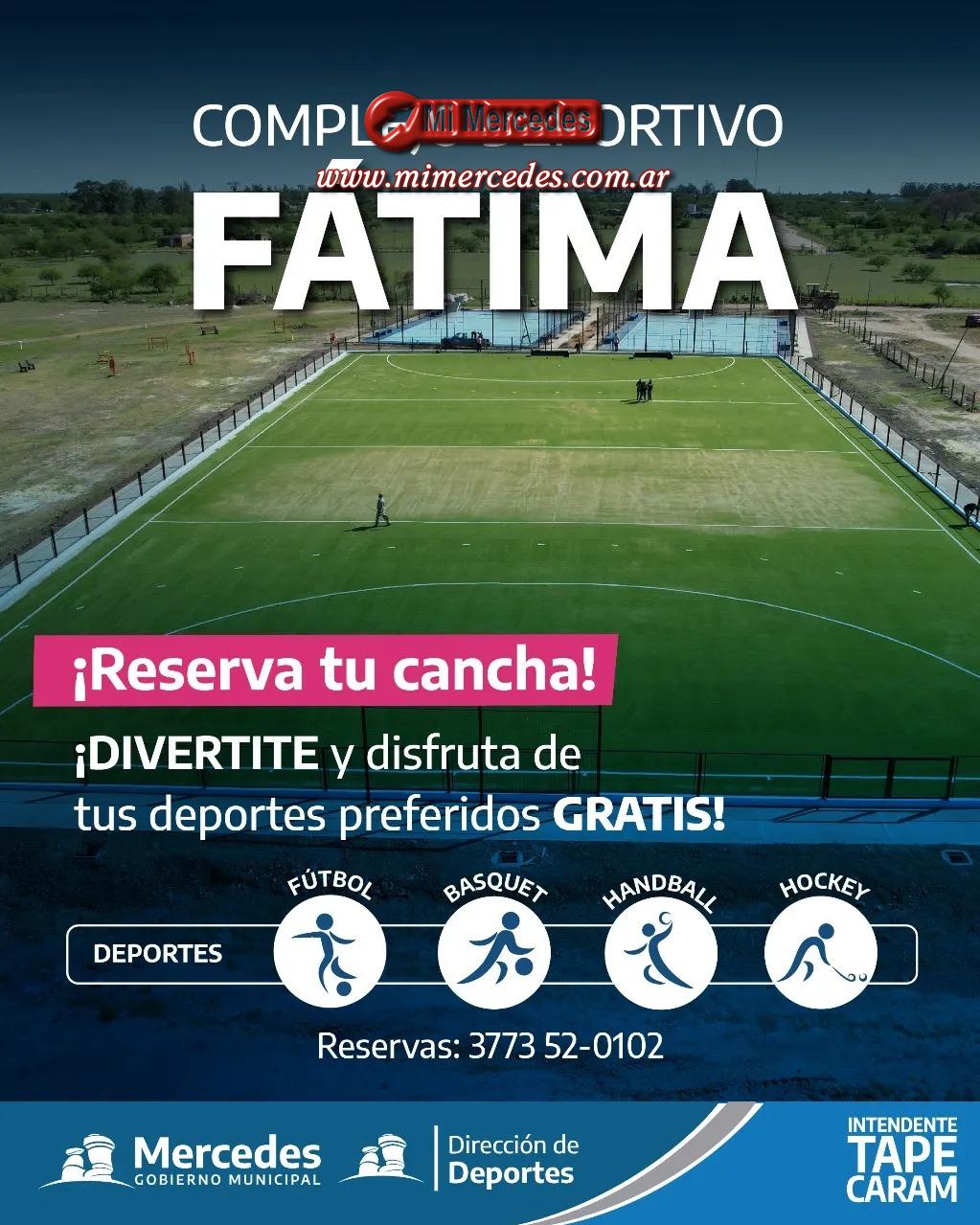La Dirección de Deportes, a cargo del prof. Nicolás Célser, informa que deben reservar las canchas del Complejo Deportivo Fátima, comunicándose al número 3773 - 520102.