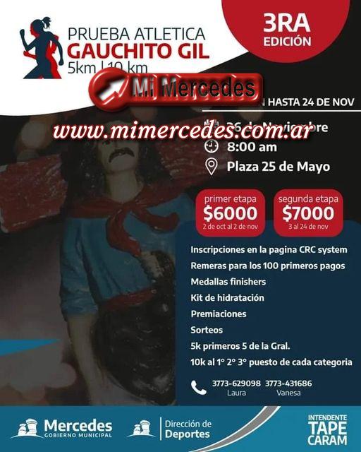 La Dirección de Deportes Municipal, organiza la Prueba Atlética “Gauchito Gil” a realizarse el 26 de noviembre desde la Plaza 25 de mayo, a las 8.00hs.