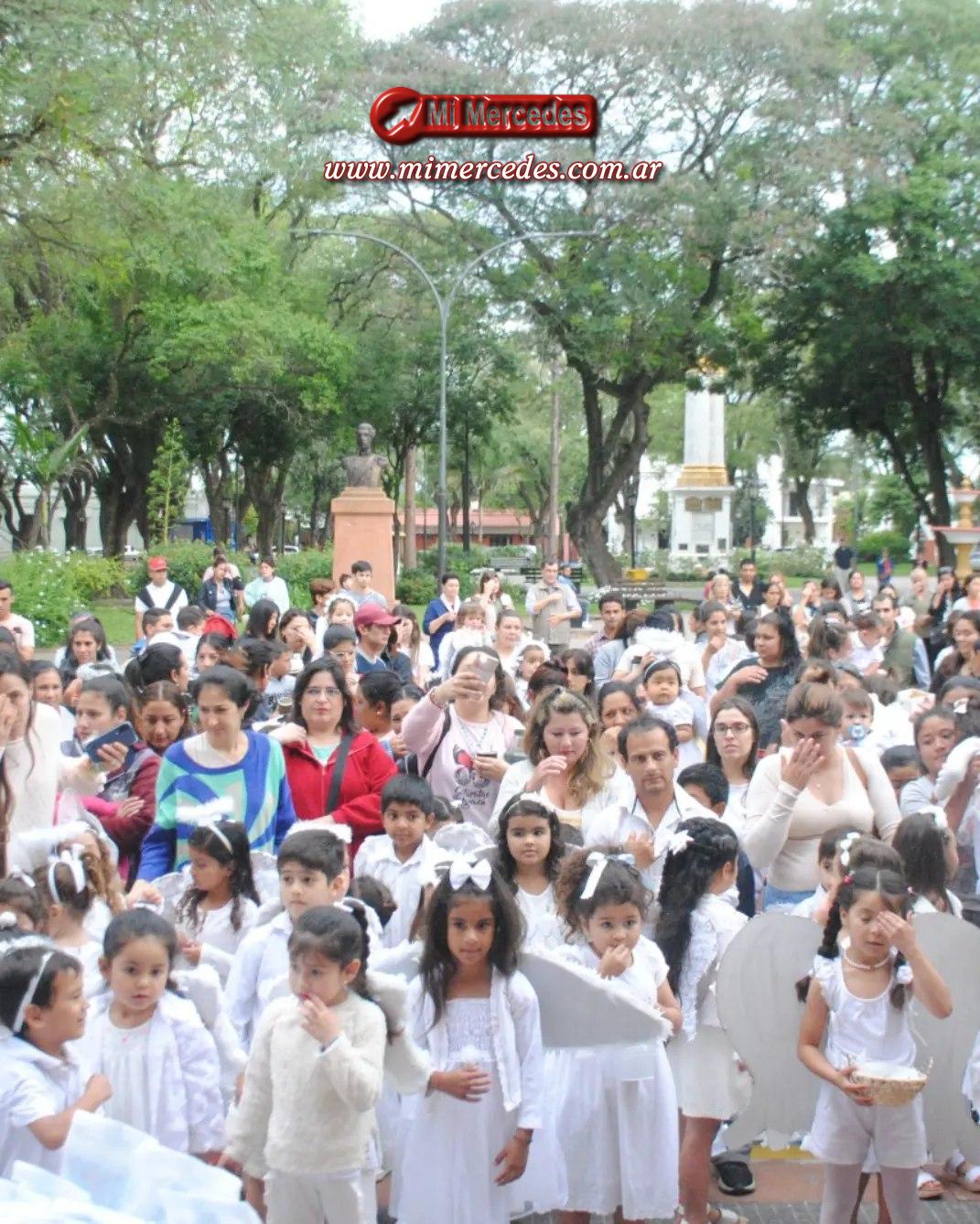 Más de 200 niños de entre un mes y 6 años, vestidos como angelitos y sus familias recorrieron algunas calles de la ciudad.