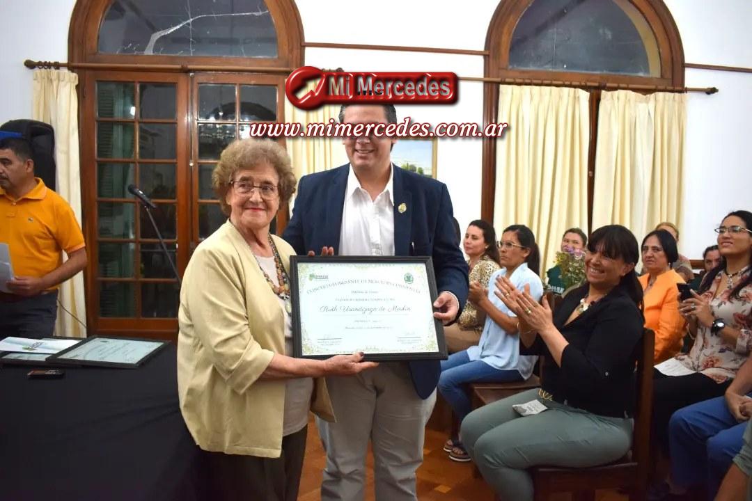Seguidamente, los Concejales hicieron entrega de presentes y el Diploma de Honor a la Directora en nombre del Intendente Municipal, Diego Caram.