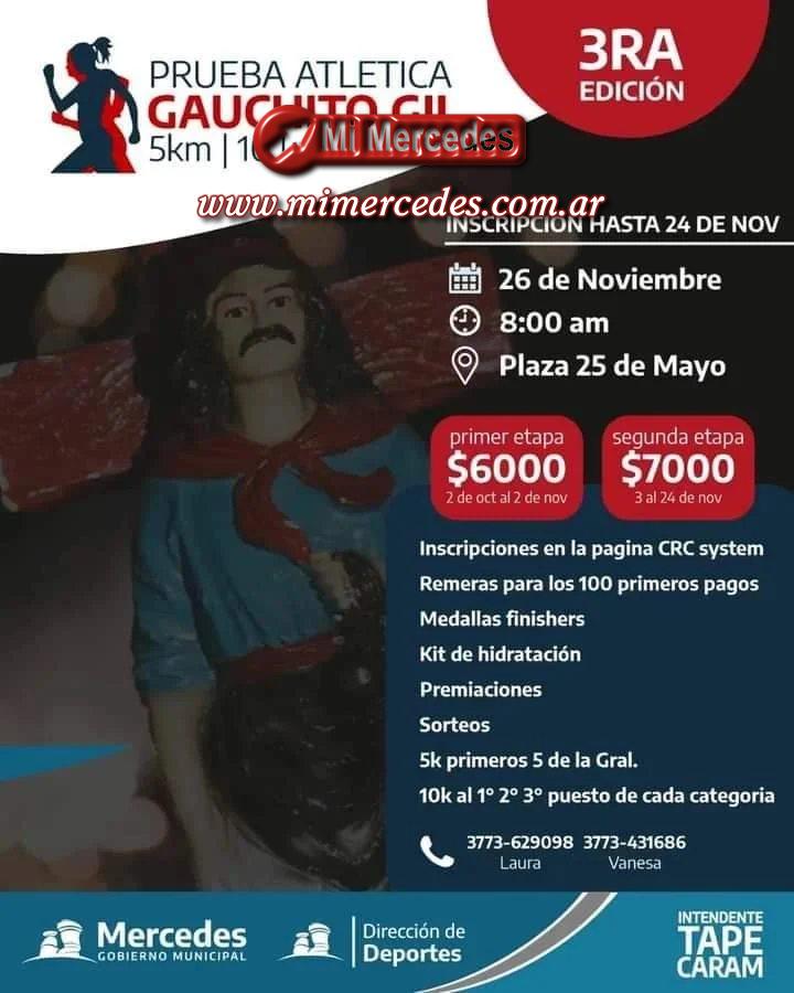 La Dirección de Deportes Municipal, organiza la Prueba Atlética “Gauchito Gil” a realizarse el 26 de noviembre desde la Plaza 25 de mayo, a las 8.00hs.
