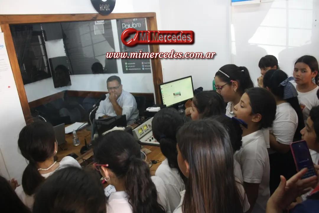 En su visita, los chicos observaron las instalaciones y al personal, compuesto por locutores y operadores de la radio que día a día llevan diferentes propuestas de información, deportes, cultura y entretenimiento a la comunidad de Mercedes.