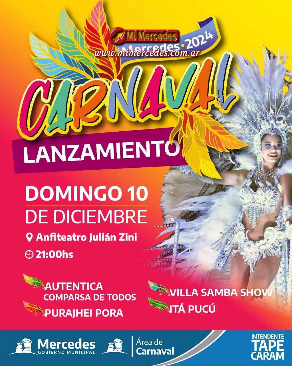 El Área de Carnaval Municipal invita a toda la ciudadanía al lanzamiento oficial del Carnaval de Mercedes 2024.