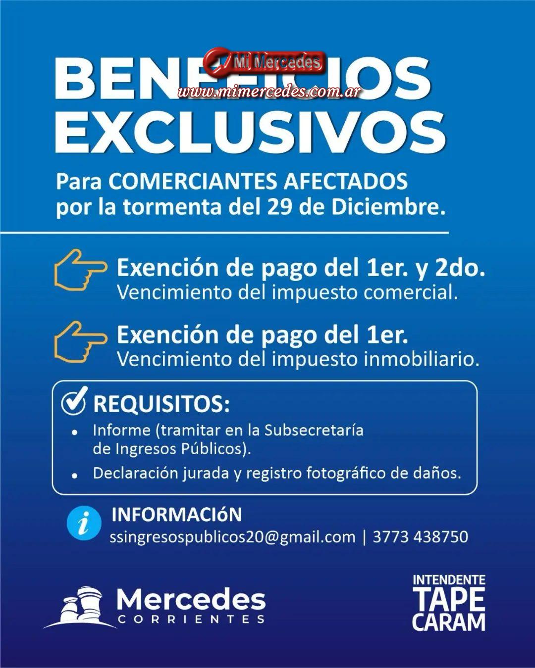 En un claro gesto de solidaridad y acompañamiento con los comerciantes afectados por la tormenta de fin de año, decidimos eximirlos del pago de la primera y segunda cuota de impuestos comerciales y la primera de impuestos inmobiliarios.