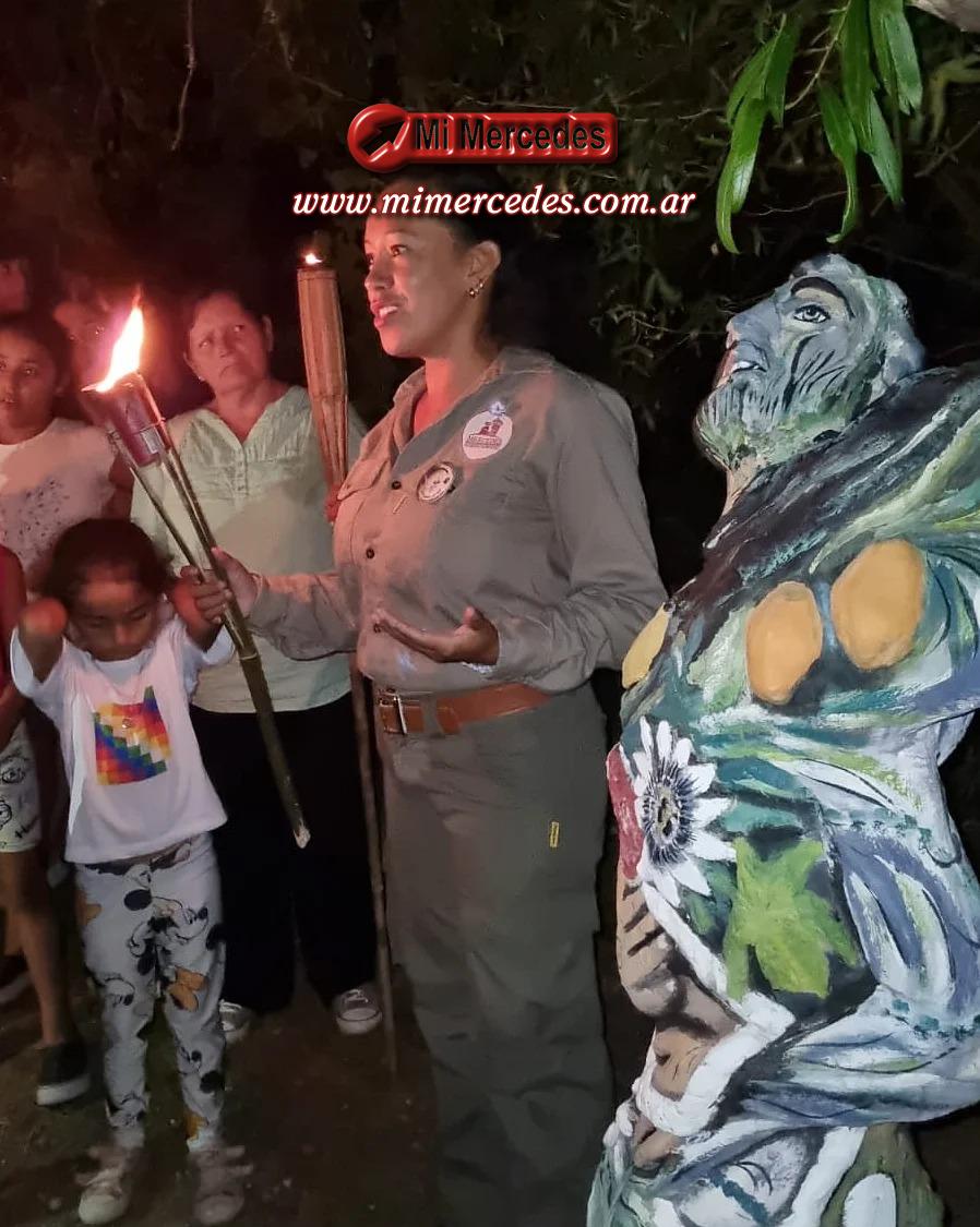Este domingo 18, la Dirección de Turismo Municipal ofreció un guiado nocturno recorriendo el Sendero Mitológico Ka Agüy Jará, dentro del Complejo “El Viejo Puente”.