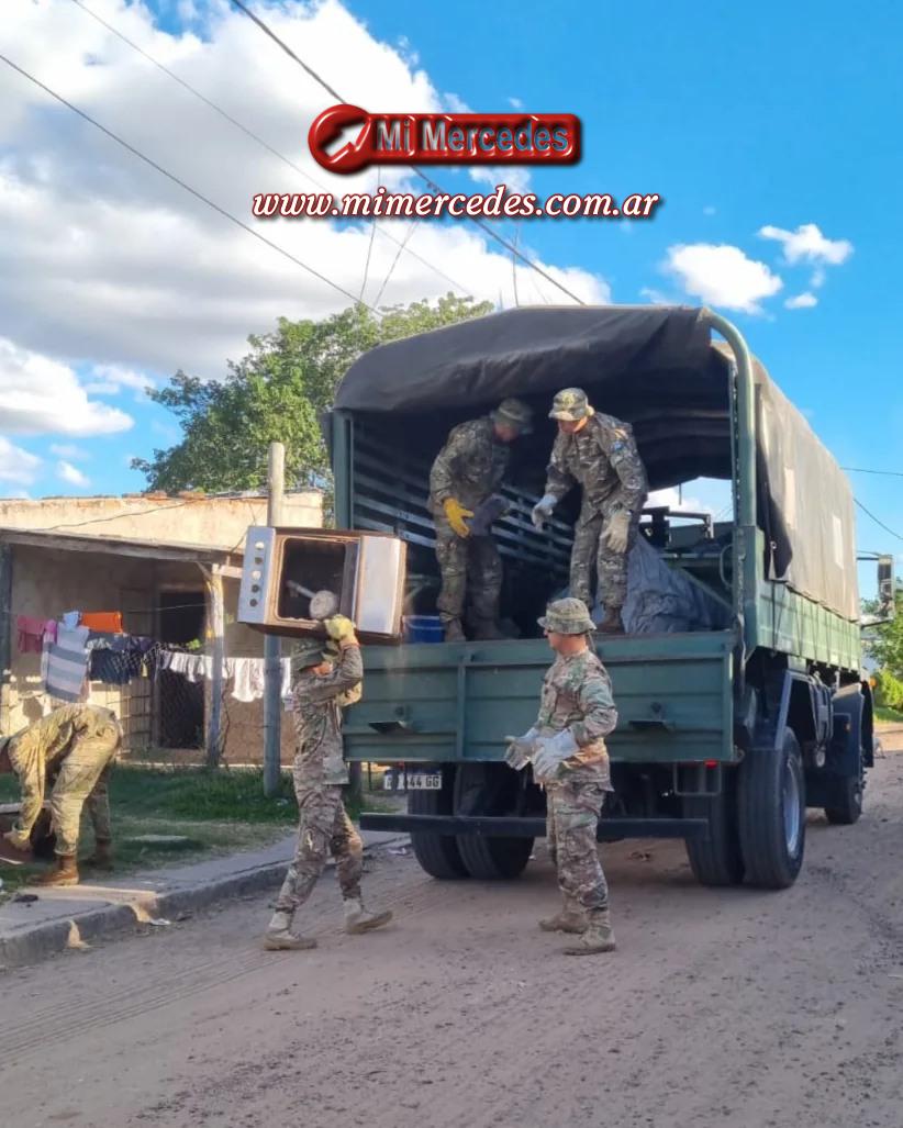 El Ejército Argentino con el Grupo de Artillería Monte 12, de nuestra ciudad, en conjunto con APS y la Municipalidad de Mercedes trabajan en conjunto en el descacharrizado del B° Recodo.
