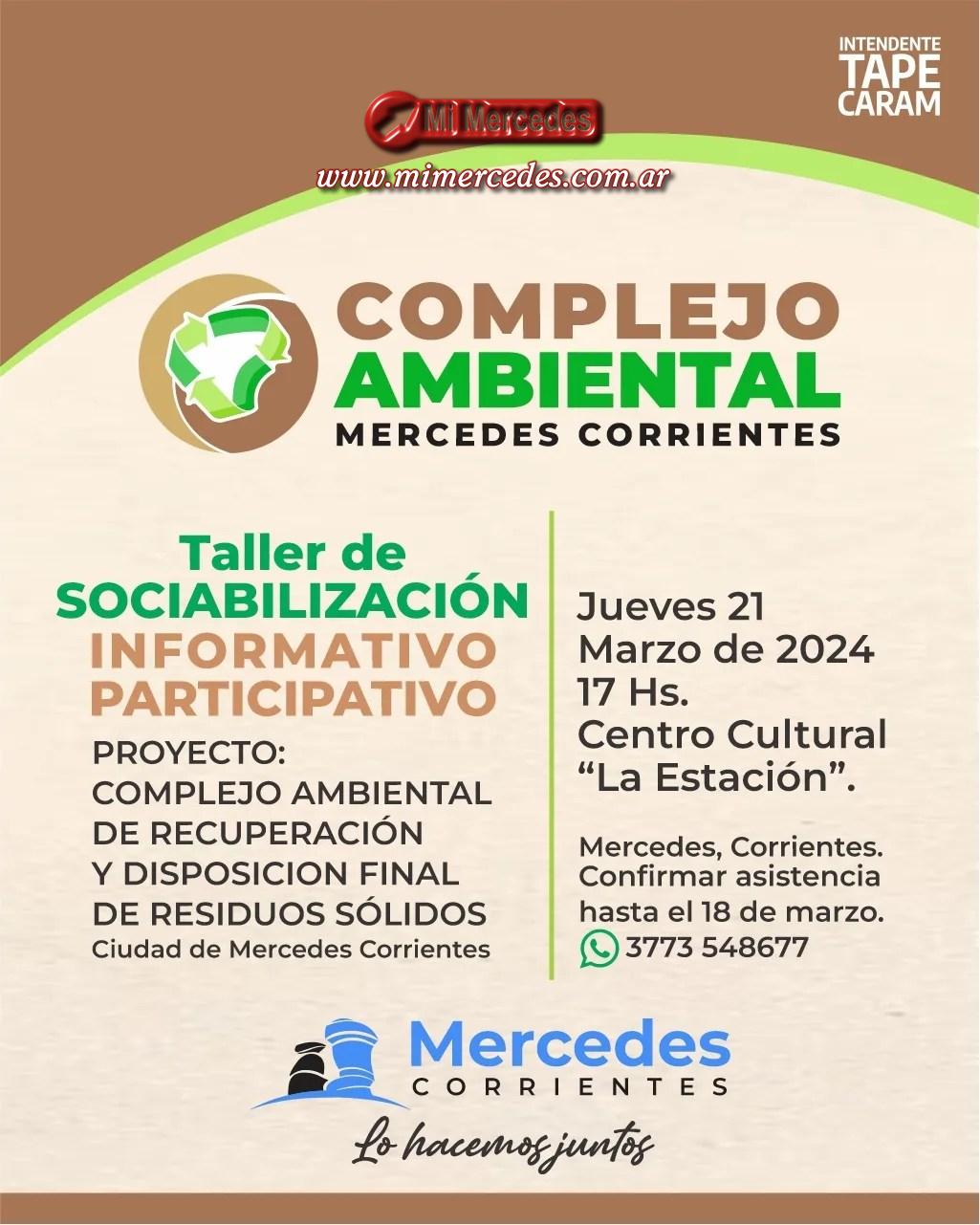 El Gobierno Municipal de Mercedes invita a participar del Taller de Sociabilización, Informativo – Participativo donde se presentará el Proyecto del Complejo Ambiental de Mercedes además de dar a conocer el informe de impacto ambiental realizado en el sitio donde se llevará a cabo el mencionado proyecto.