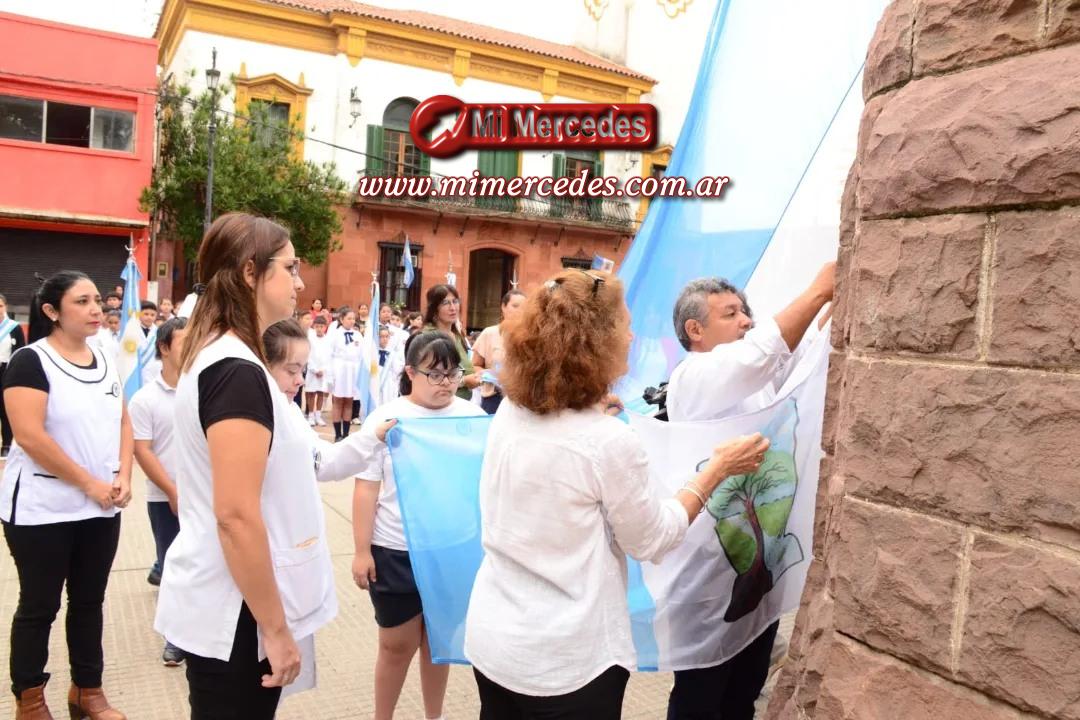 Durante el acto se realizó el izamiento del Pabellón Nacional y de la Bandera de Mercedes, también se escucharon palabras alusivas a la fecha.