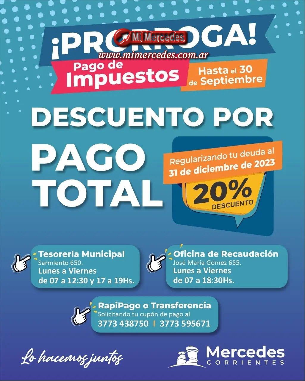 Desde el 1 de agosto hasta el 30 de septiembre, ofrecemos un descuento del 20% sobre deudas municipales vencidas al 31-12-2023 pagando en efectivo, débito o transferencia.