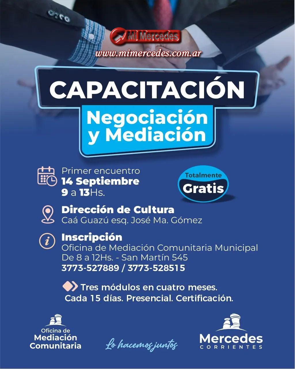 El Gobierno Municipal de Mercedes, comprometido con el fortalecimiento del tejido social y la resolución pacífica de conflictos, te invita a formar parte de esta capacitación gratuita en Negociación y Mediación.