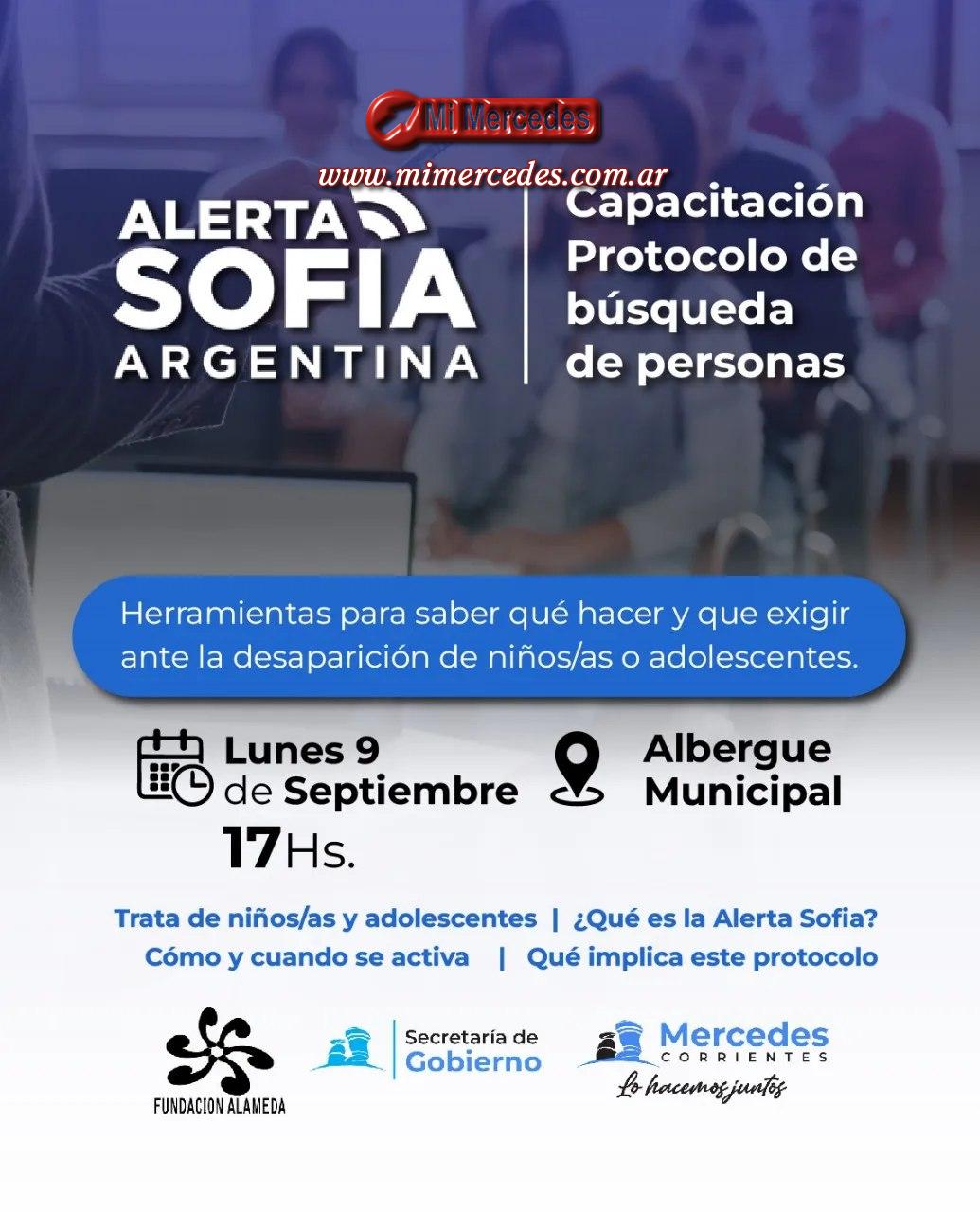 La Secretaría de Gobierno junto con la Fundación Alameda, realizarán este lunes 9 de septiembre a las 17 hs, una capacitación sobre el Protocolo de Búsqueda de Personas: Alerta Sofía.