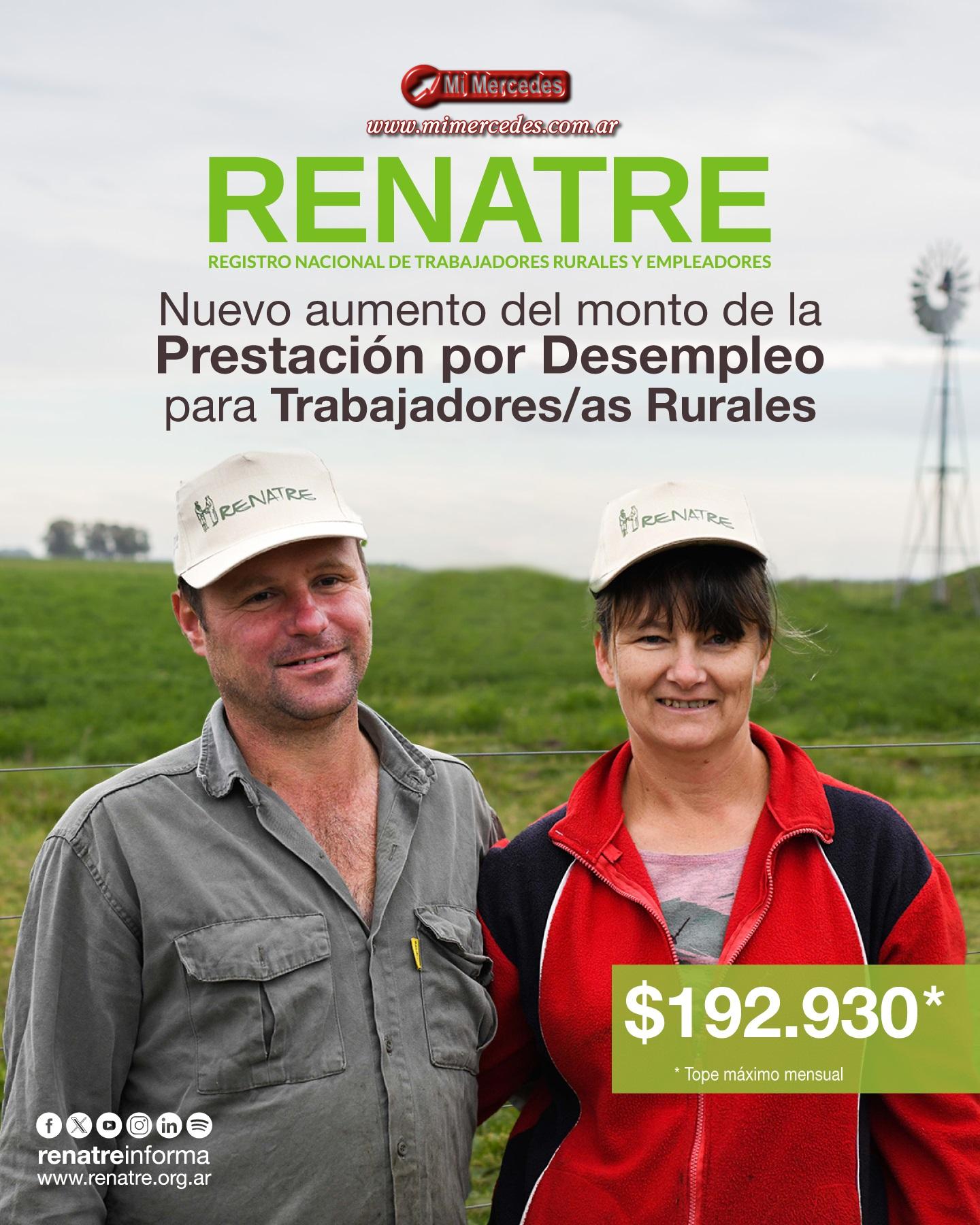 El Cuerpo Directivo del Registro Nacional de Trabajadores Rurales y Empleadores (RENATRE) resolvió incrementar las prestaciones por desempleo, a partir de noviembre. La decisión lleva el monto máximo de la prestación a $192.930 y el mínimo a $96.465, y refuerza así el ingreso trabajadoras y trabajadores rurales en situación de desempleo.