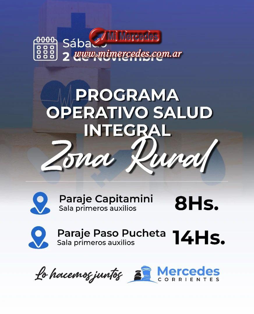 El Gobierno Municipal de Mercedes continúa su compromiso de acercar servicios de salud a cada rincón de nuestra comunidad. Este sábado 2 de noviembre, se llevará a cabo un nuevo Operativo Integral en la zona rural: