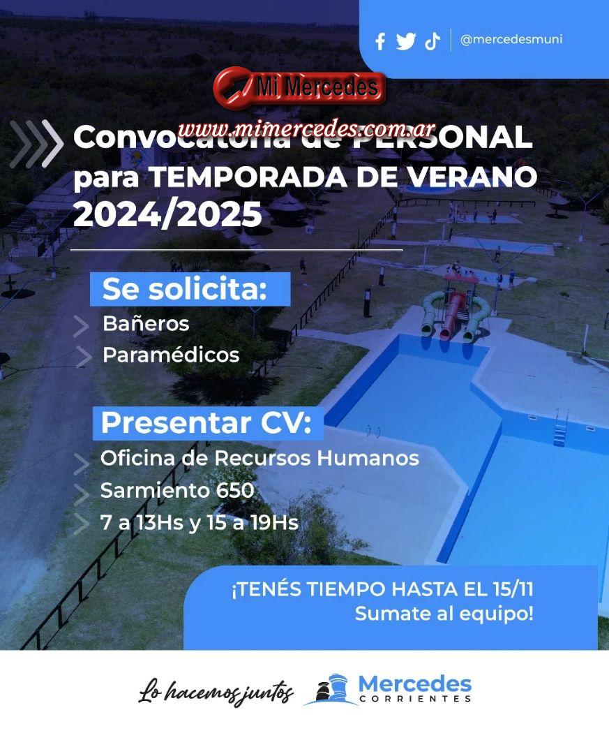 El Gobierno Municipal de Mercedes invita a aquellos paramédicos y bañeros interesados en formar parte del equipo para la próxima temporada de verano 2024/25, para brindar seguridad y asistencia a los vecinos y visitantes que disfruten de las instalaciones.