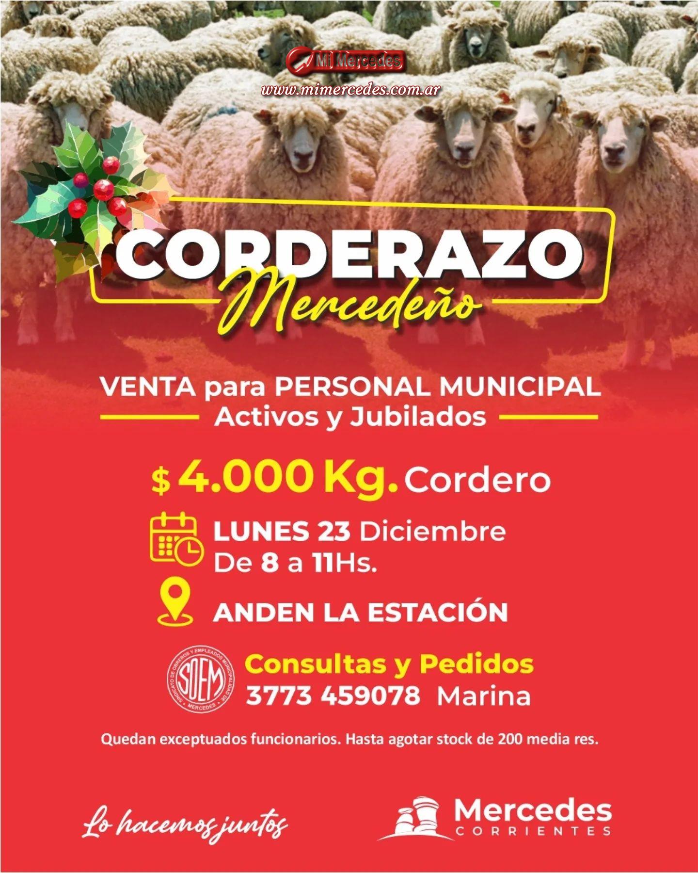 Al aproximarse las festividades de Navidad y Año Nuevo, el Gobierno Municipal de Mercedes pone a la venta carne de cordero para el personal municipal (activos y jubilados)