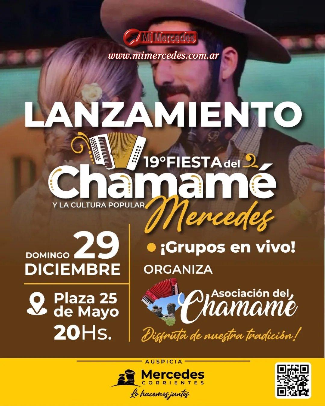 Este domingo 29 de diciembre, a partir de las 20 hs, la Plaza 25 de Mayo será el escenario del lanzamiento de la 19° Fiesta del Chamamé en Mercedes.