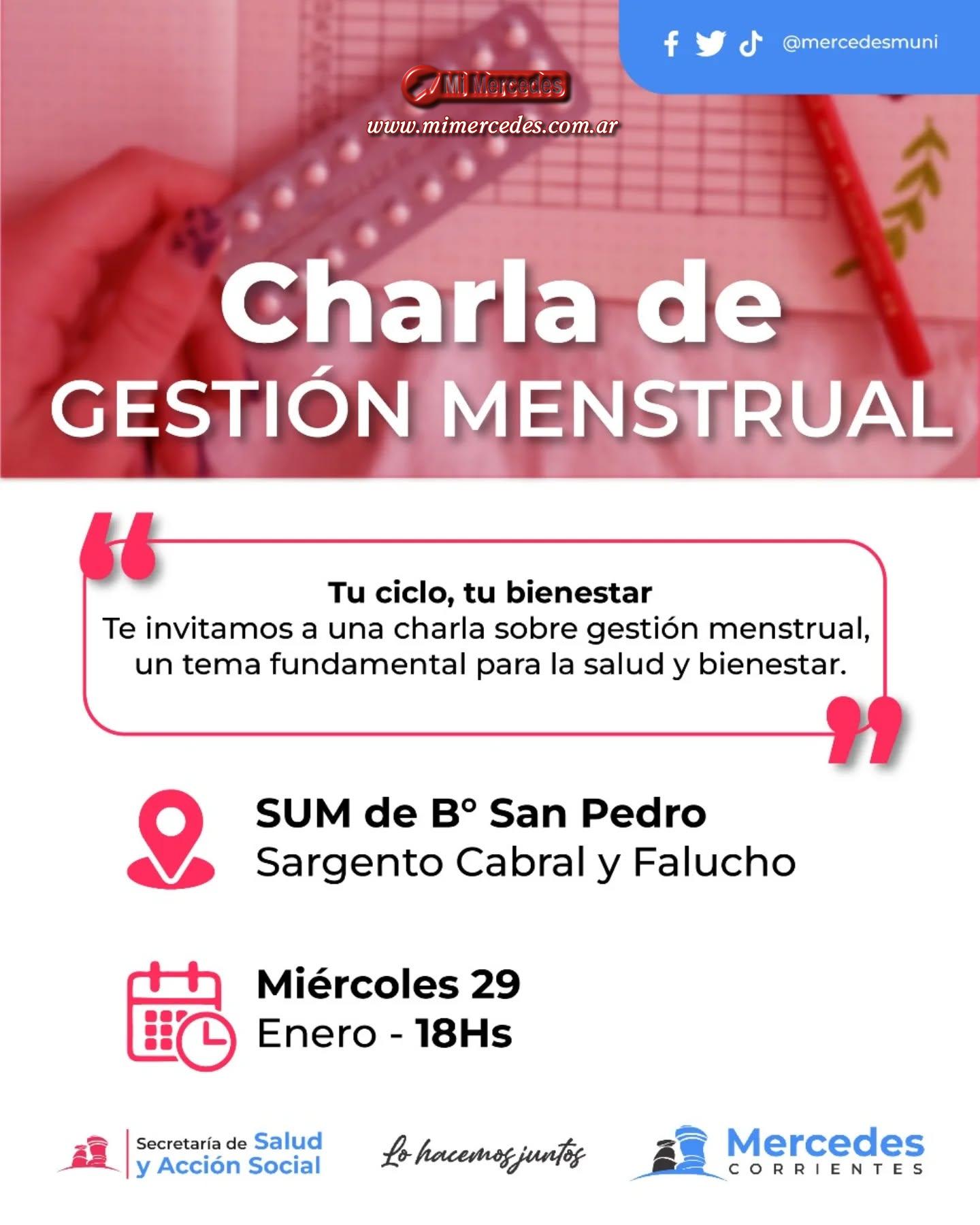 La Secretaría de Salud y Acción Social de Mercedes invita a la comunidad a participar de una charla informativa sobre Gestión Menstrual, destinada a promover la salud, el cuidado y la educación menstrual.